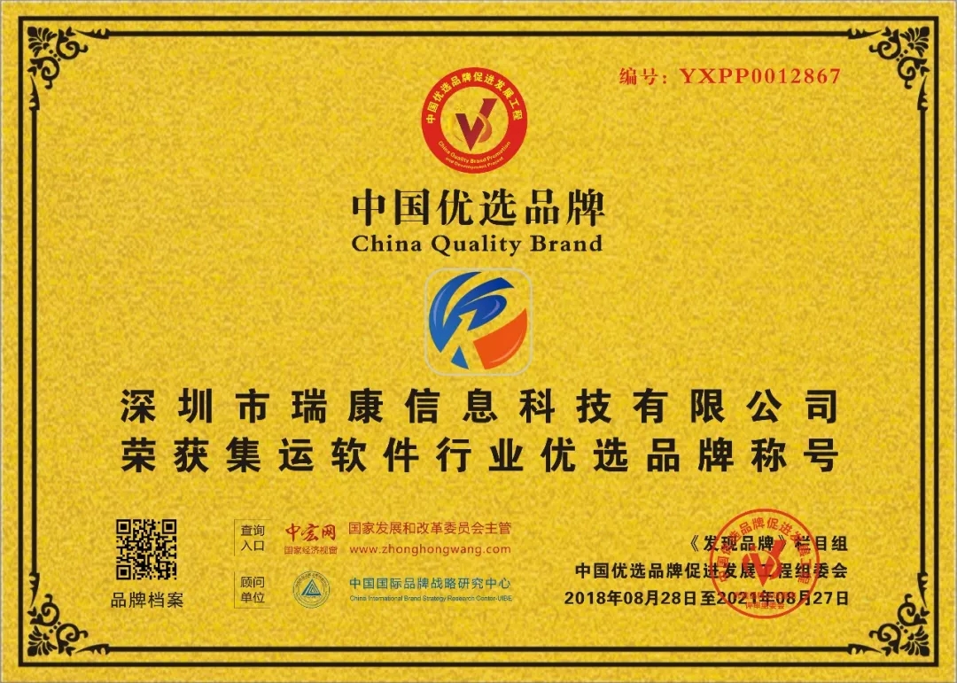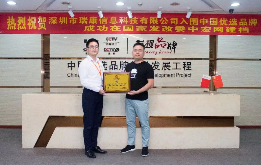 2016年9月20日,中央电视台在“2017年黄金资源暨国家品牌计划发布会”上隆重启动“国家品牌计划”,央视宣布将调动全媒体资源服务于国家品牌计划,助力品牌腾飞。而为了更好的践行国家品牌计划,CCTV建设了《发现品牌》栏目旗下的“中国优选品牌促进发展工程”,这个工程主要是通过各地采编记者进行实地考察,走访符合条件的优质企业,品牌,建立中国优选品牌库。《发现品牌》栏目通过在深圳的实地考察,发现了瑞康信息科技区别于其他软件开发行业的独特优势,并了解到瑞康创新的思维以及发展潜力,未来的发展前景十分可观,因此通过评估支持入选中国优选品牌。这个栏目所有的入围企业将建立品牌档案并在官方网络公示,从而加深社会公众对优秀企业的品牌认知。